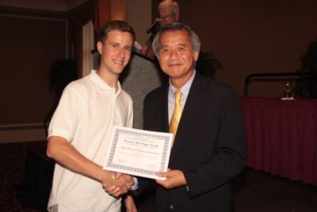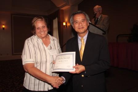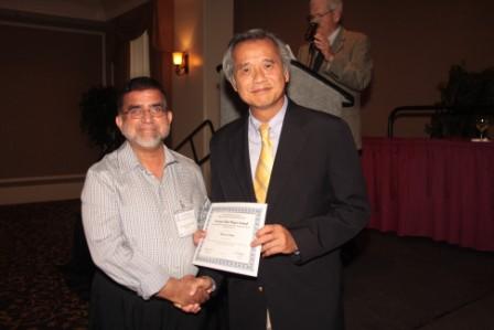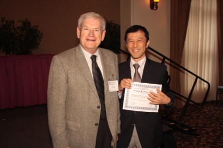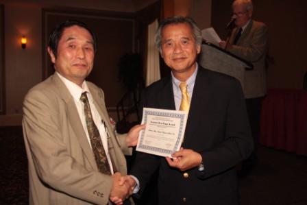Masahiro Aruga receiving the best paper award of the session “Electronics Engineering, including Communications Systems Engineering and Control”, which was part IMETI 2009 conference program. The title of the awarded paper is “On the Expanded Information Contents for the YUBITSUKIYI System and the Dementia Situation Taking Account of Fuzzy Concept of Markov’s Information Source”