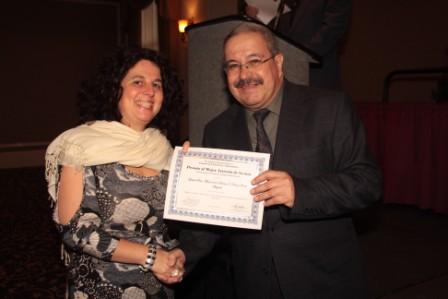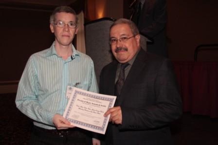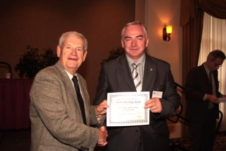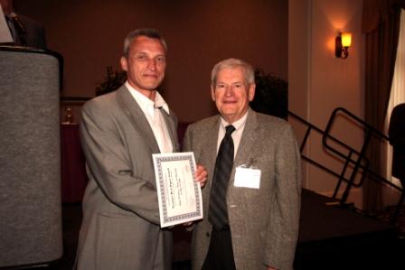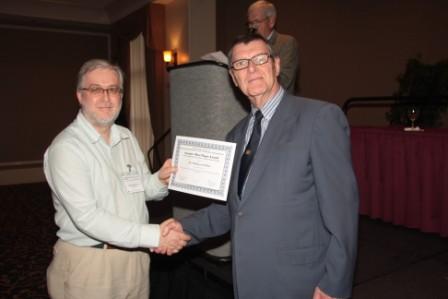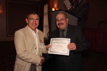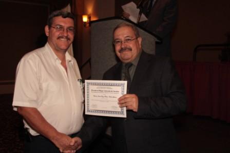 Dr. C. Dale Zinn receiving, from Dr. Nagib Callaos, an IIIS recognition for his professional quality and leadership in the area of Safety and Risk Management