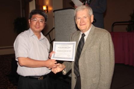 Richard S. Segall receiving the best paper award of the session “Concepts, Principles, Methodologies and Applications of Cybernetics”, which was part WMSCI 2009 conference program. The title of the awarded paper is “Advanced Data Mining of Leukemia Cells Micro-Arrays”