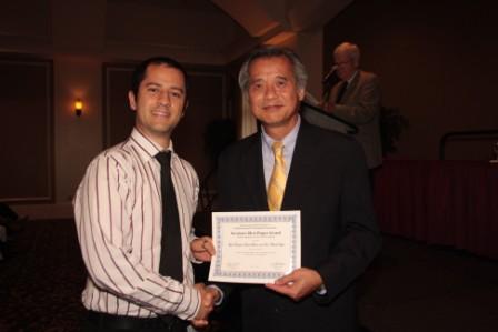Shigehiro Hashimoto receiving the best paper award of the session “Biomedical Engineering”, which was part BMIC/WMSCI 2009 conference program. The title of the awarded paper is “Application of Inductively Coupled Wireless Radio Frequency Probe to Knee Joint in Magnetic Resonance Image”