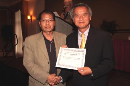 Richard Chiou receiving the best paper award of the session “Engineering Education and Educational Technologies I”, which was part EEET/IMETI 2009 conference program. The title of the awarded paper is “Enhancement of Online Robotics Learning Using Real-Time 3D Visualization Technology”