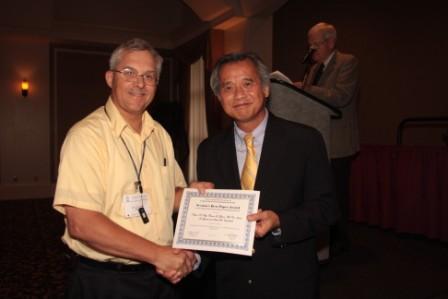 Jang-Ruey Tzeng receiving the best paper award of the session “Knowledge Service and System Application”, which was part WMSCI 2009 conference program. The title of the awarded paper is “The Strategic Study of National Quality Award through Business Excellence Model – The IBM, Panasonic and Yusan (?) Bank Cases in Taiwan”