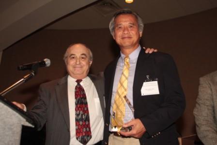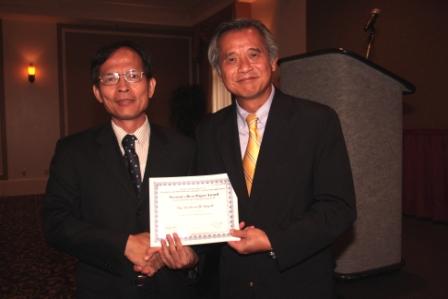 Prof. Hsing-Wei Chu receiving, from Dr. Nagib Callaos, an IIIS recognition for his academic quality and leadership in the area of Industrial Engineering