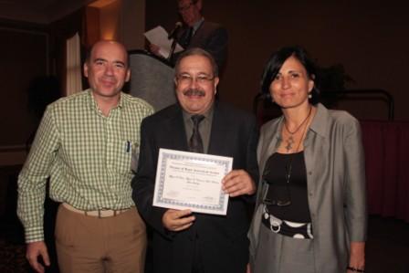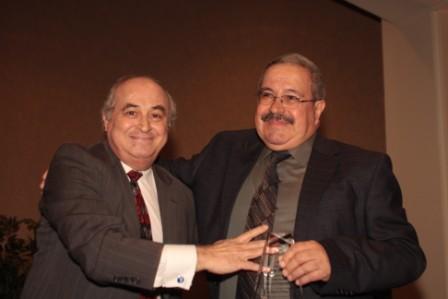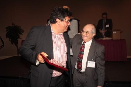 Professor Andrés Tremante receiving, from Dr. Nagib Callaos, an IIIS recognition for his academic quality and leadership in the area of Mechanical Engineering