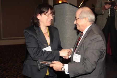 Prof. Friedrich Welsh receiving, from Dr. Nagib Callaos, an IIIS recognition for his academic quality and leadership in the area of Social Sciences