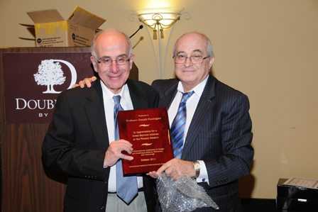 Professor Donald Poochigian receives a plaque of appreciation of the Plenary Keynote Address he delivered, from Dr. Nagib Callaos, conference General Chair.