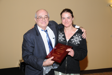 Dr. Merja Bauters receives a plaque of appreciation of the Plenary Keynote Address he delivered, from Dr. Nagib Callaos, conference General Chair.