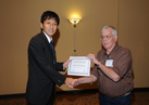 Dr. Jeremy Horne, Program committee Chair, giving Mr. Ryoji Nagai the best paper award of the session “Communication and Network Systems and Technologies” The title of the awarded paper is ''Near-Field Coupling Communication Technology for Human-Area Networking''