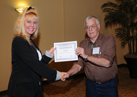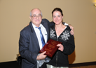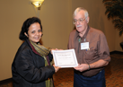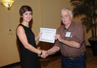 Dr. Jeremy Horne, Program committee Chair, giving Prof. Suzanne Lunsford the best paper award of the session “Research and Teaching/Learning” The title of the awarded paper is ''Interdisciplinary Professional Development Program for Teachers''